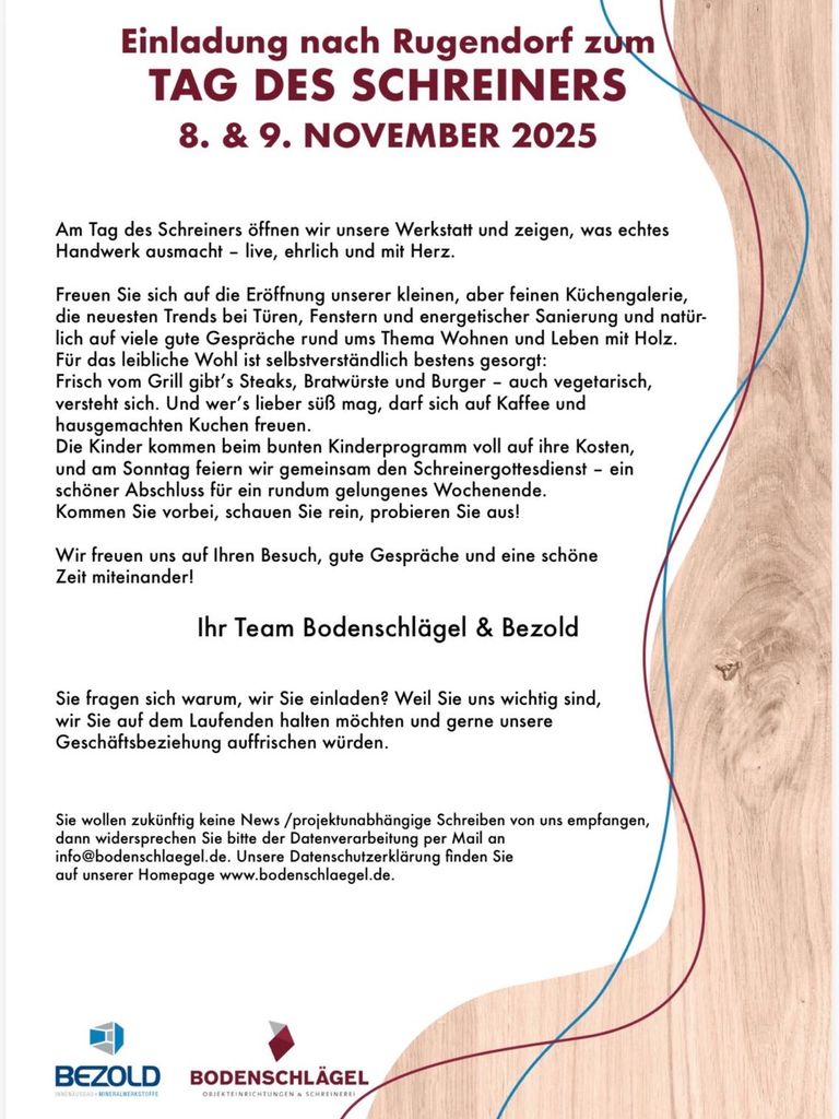 Tag des Schreiners am Samstag den 8. November